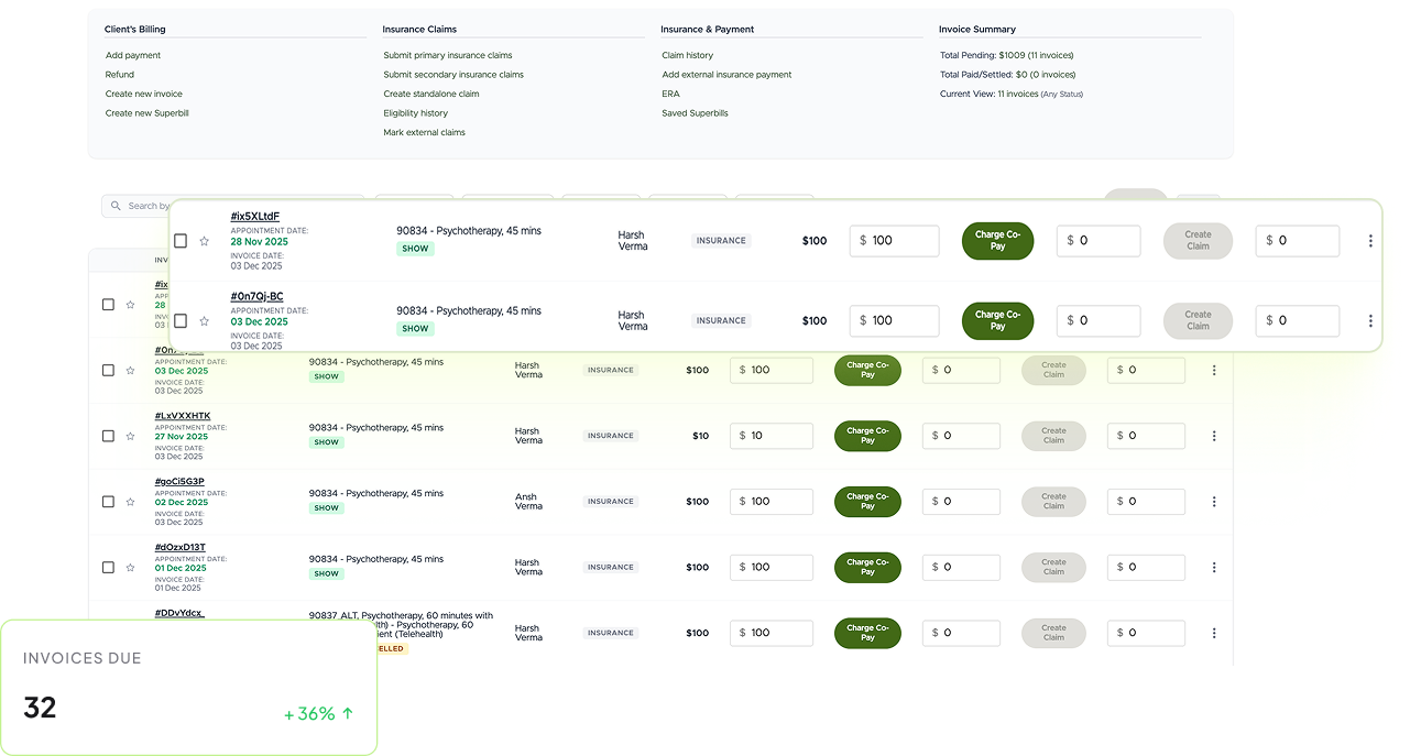 Streamlined submission, tracking, and reconciliation of insurance claims to maximize reimbursement.